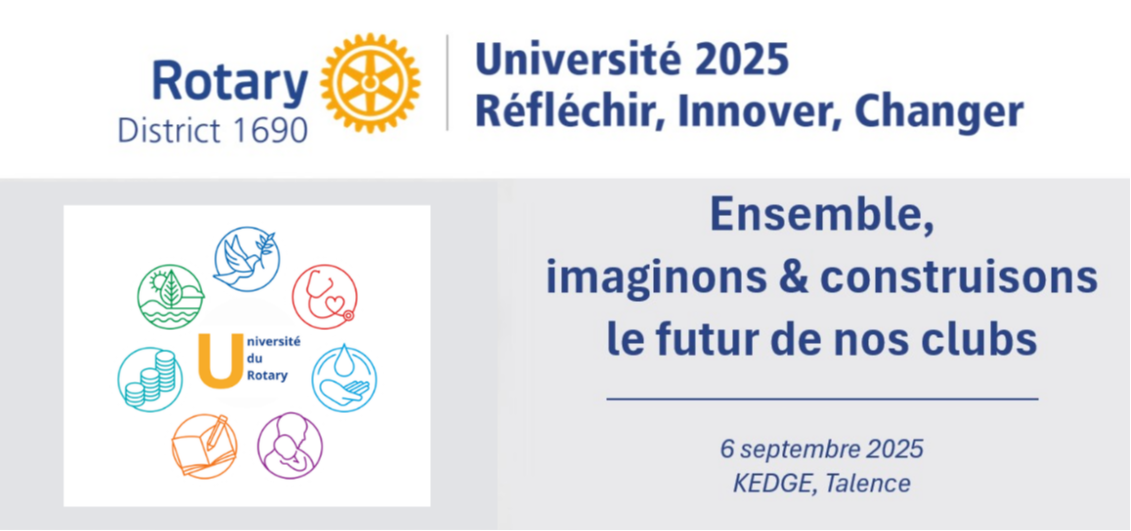 C’est avec un immense plaisir que nous vous invitons à participer à l’Université du Rotary, un moment unique de formation, d’échange et de renforcement de nos valeurs rotariennes.
